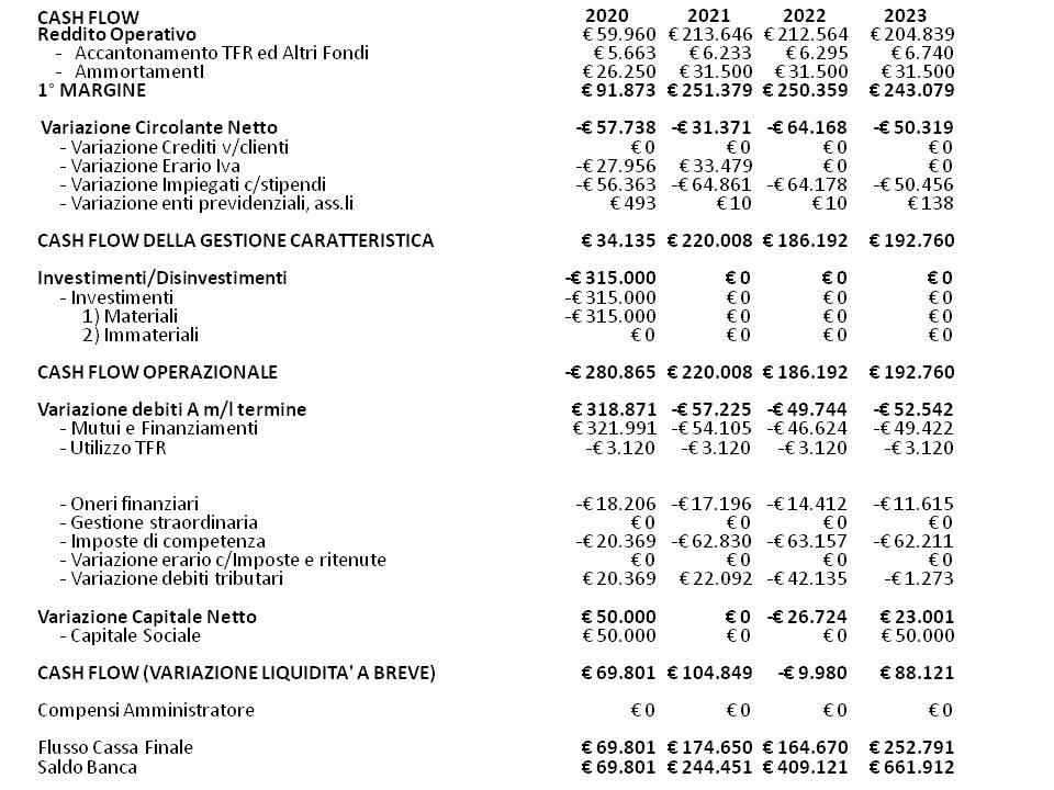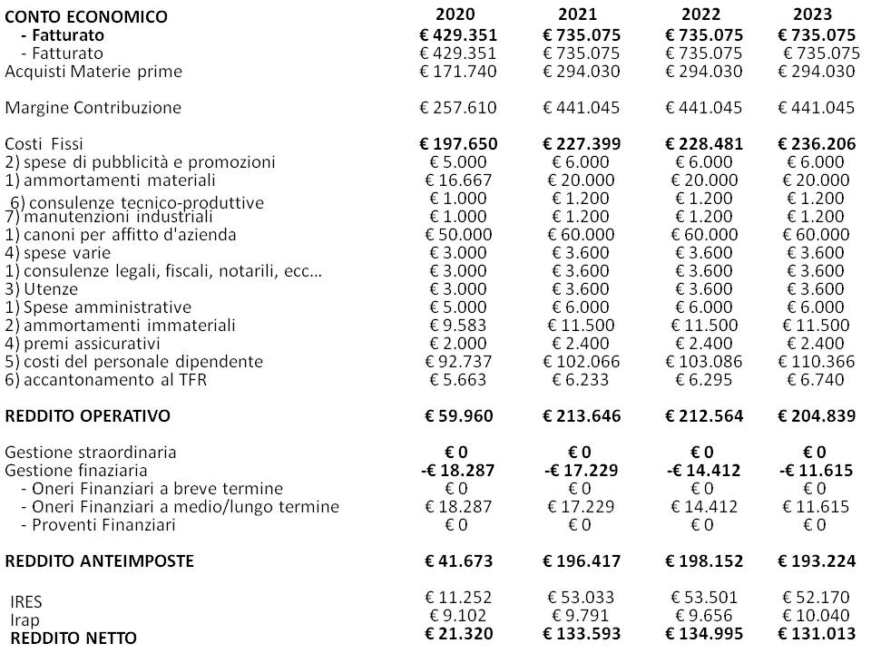Siamo ora in grado, sulla base degli elaborati precedenti, di rappresentare il Previsionale Economico della nostra Start UP.