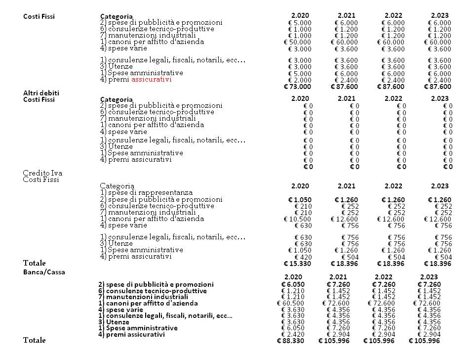 Nel Modello si ha la possibilità di inserire l’incidenza % dei Costi Variabili sul Fatturato per singola tipologia di Prodotto inserito. E’ possibile quindi inserire dall’elaborato “Costi variabili” del Modello , la previsione economico (costi), finanziaria (uscite) e patrimoniale (credito iva e debito verso fornitori).