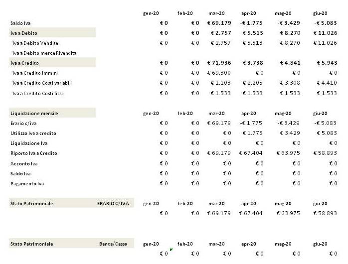 Trattando di una Start up, nella prima fase avremo costi investimenti maggiori dei ricavi che generano un credito Iva che sarà liquidato nei periodi successivi.