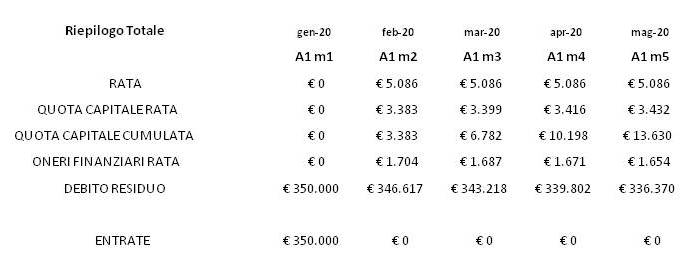 2. fonti finanziarie esterne («capitale di terzi» o di credito): I finanziamenti con capitale di terzi (o «di credito») provengono invece da soggetti estranei all’impresa: si tratta di prestiti concessi da banche, società finanziarie in senso lato o privati. Il modello calcola in automatico il prospetto riepilogativo di un finanziamento a tasso costante e rata capitale costante mensile. Possiamo quindi inserire in questa sezione la parte riepilogativa annuale del finanziamento ( e in allegato i dettagli mensili).